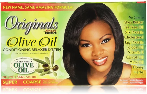 Africa’s Best Olive Oil Conditioning Relaxer is a superior hair treatment designed to relax and straighten naturally curly or kinky hair. Enriched with the goodness of extra virgin olive oil, it deeply conditions and nourishes hair during the relaxing process, helping to maintain moisture and prevent dryness. This no-lye formula reduces frizz, adds shine, and leaves hair soft, smooth, and more manageable. Ideal for achieving long-lasting straightening results, it ensures healthy, beautiful, and lustrous hair.